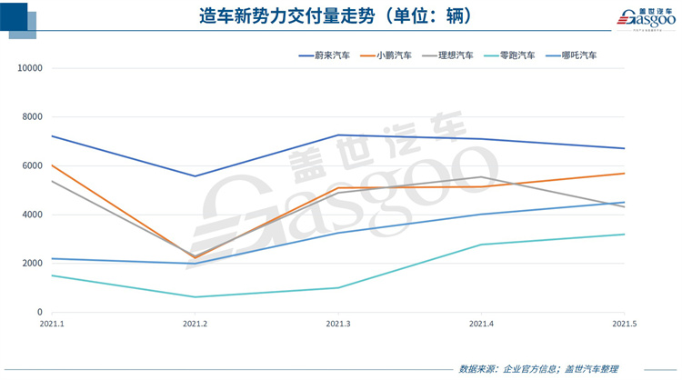 理想汽车面临同样的处境,数据显示,理想汽车5月共交付4,323辆理想ONE,同比增长101.3%。值得注意的是,理想汽车5月交付量相比4月减少了1,216辆,环比下降约22%。交付量环比下降的主要原因或是芯片供应短缺。在今年一季度财报电话会议中,理想汽车联合创始人兼总裁沈亚楠曾提及理想汽车面临芯片供应短缺的问题,其称,新款理想ONE正经历产量爬坡,加之芯片供应短缺的问题,目前新款理想ONE的实际产量达不到较高水平。