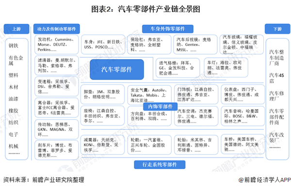 其中,原材料需求量较大的有钢铁、有色金属、电子元器件、塑料、橡胶、玻璃。下游包括汽车整车制造厂商、汽车4S店、汽车修理厂、汽车零部件配件商和汽车改装厂等。