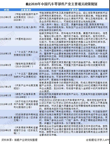 从整体来看,国家正在促进我国汽车行业调整升级,鼓励研发制造高质量、高技术水平的自主品牌汽车,对新能源汽车保持着较大的扶持力度。一系列汽车产业政策的发布,无疑对零部件产业提出了更高的要求。同时,为促进我国汽车零部件行业积极健康发展,近年来我国相关部门颁布了行业相关政策发展规划。