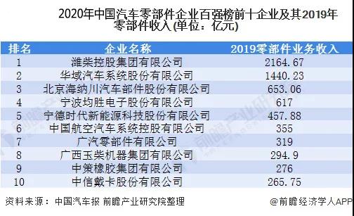 在2020年国际百强榜单中,排在前五位的企业是德国博世、德国大陆、日本电装、加拿大麦格纳和德国采埃孚,有11家中国汽车零部件企业入选,分别是潍柴集团、华域汽车、海纳川、均胜电子、宁德时代、中航汽车、广汽零部件、玉柴集团、中策橡胶、中信戴卡、法士特集团。