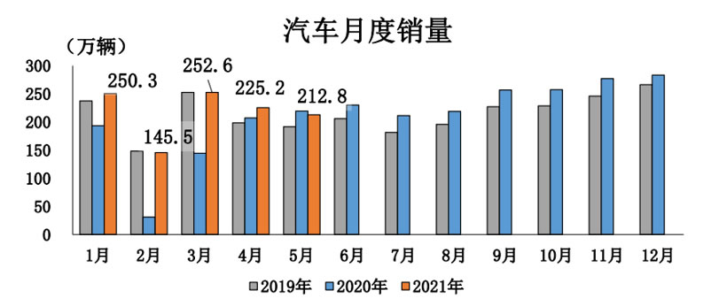 根据中国汽车工业协会(简称“中汽协”)最新一期的产销数据,今年5月,中国汽车产销分别为204.0万辆和212.8万辆,环比下降8.7%和5.5%,同比下降6.8%和3.1%。不过,与2019年同期相比,5月产销同比分别增长10.3%和11.1%。