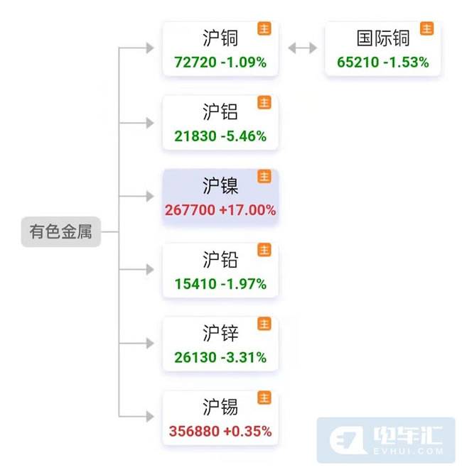 电车汇消息:近日, LME镍上演史诗级行情,伴随着LME镍的暴涨,国内沪镍主力期货合约在3月7日涨停之后,当日夜盘开盘便封涨停直至3月8日收盘,3月8日夜盘继续封涨停至3月9日日盘。目前上期所沪镍主力的最新报价为26.77万元/吨。