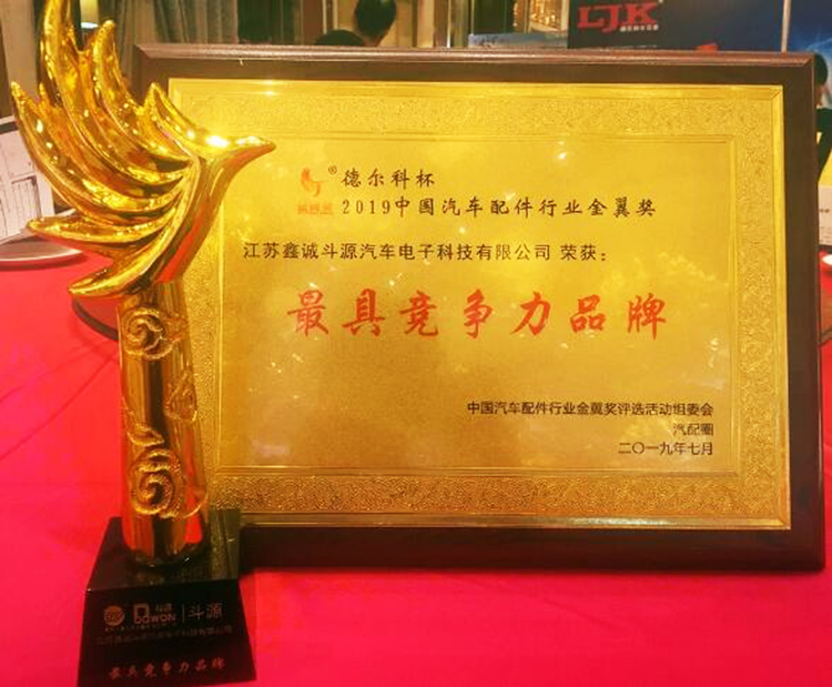 江苏鑫诚斗源汽车电器制造有限公司荣获“德尔科杯”2019金翼奖最具竞争力品牌