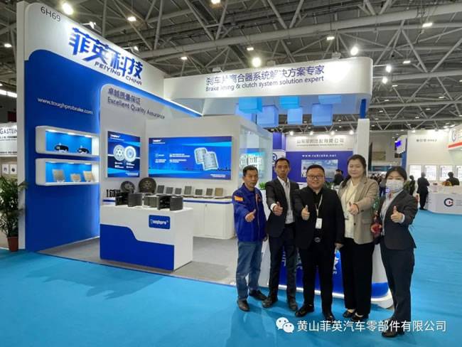 菲英科技携旗下鼓式刹车片、盘式刹车片、离合器压盘及从动盘等系列产品精彩亮相本次展会。优秀的产品性能、独特的技术优势、详尽的产品介绍吸引了大量观众驻足,参观及咨询者络绎不绝。