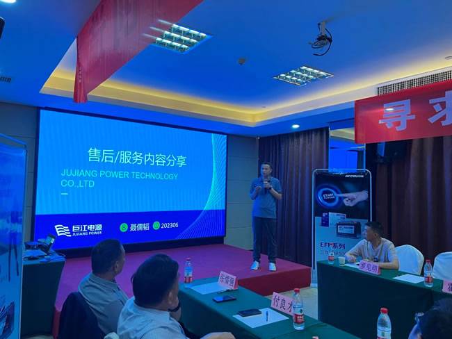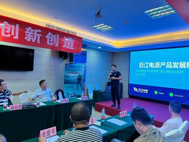 另外,会议上市场战略中心产品经理杨选鸿也进行产品分享。杨经理重点介绍了西北区的市场特点和发展前景,以及如何在该区域提升巨江电源的品牌知名度和市场份额。他鼓励经销商们在西北区的经营中勇于拓展,灵活应对市场变化,共同开创美好未来。