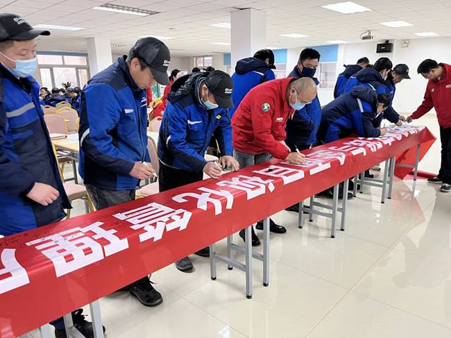 宣誓仪式结束后,全体员工在启动会条幅上签字并合影留念。