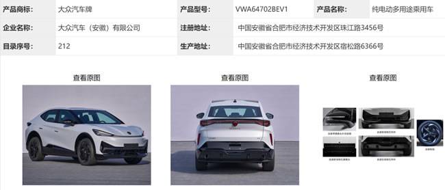 3月12日,大众安徽首款车型在工信部最新一批新车申报目录中备案,为纯电动多用途乘用车,申报企业为大众汽车(安徽)有限公司。据悉,该车型基于MEB平台打造,车型名称“ID.UNYX”(与众),定位A级轿跑风格SUV,计划在2024年第二季度上市。